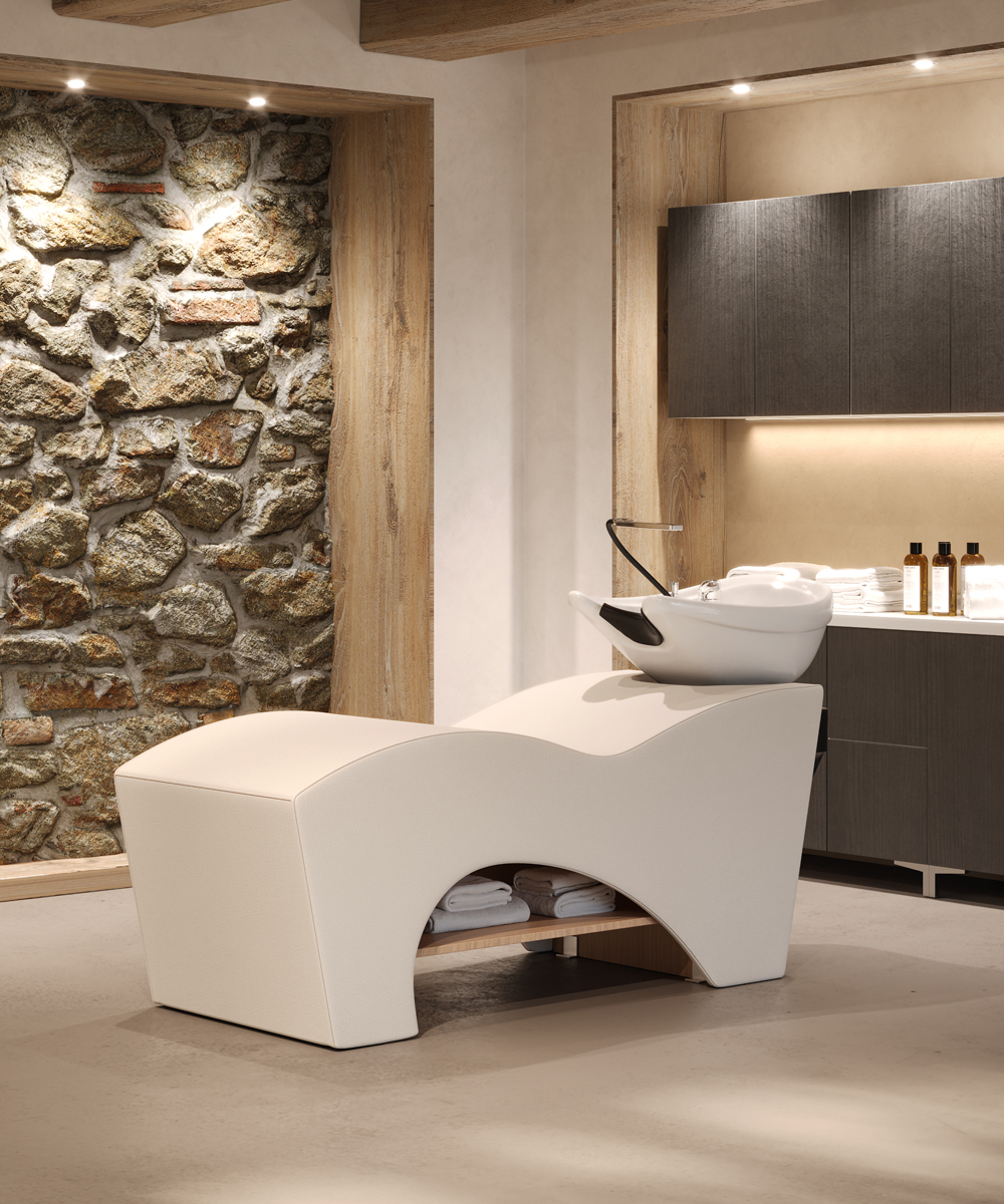 Favola’s standout feature is the new spacious tilting ceramic basin, equipped with a comfortable neck cushion, which allows the client to be smoothly guided from a seated to a semi-reclined position, delivering a deep and total relaxation experience.