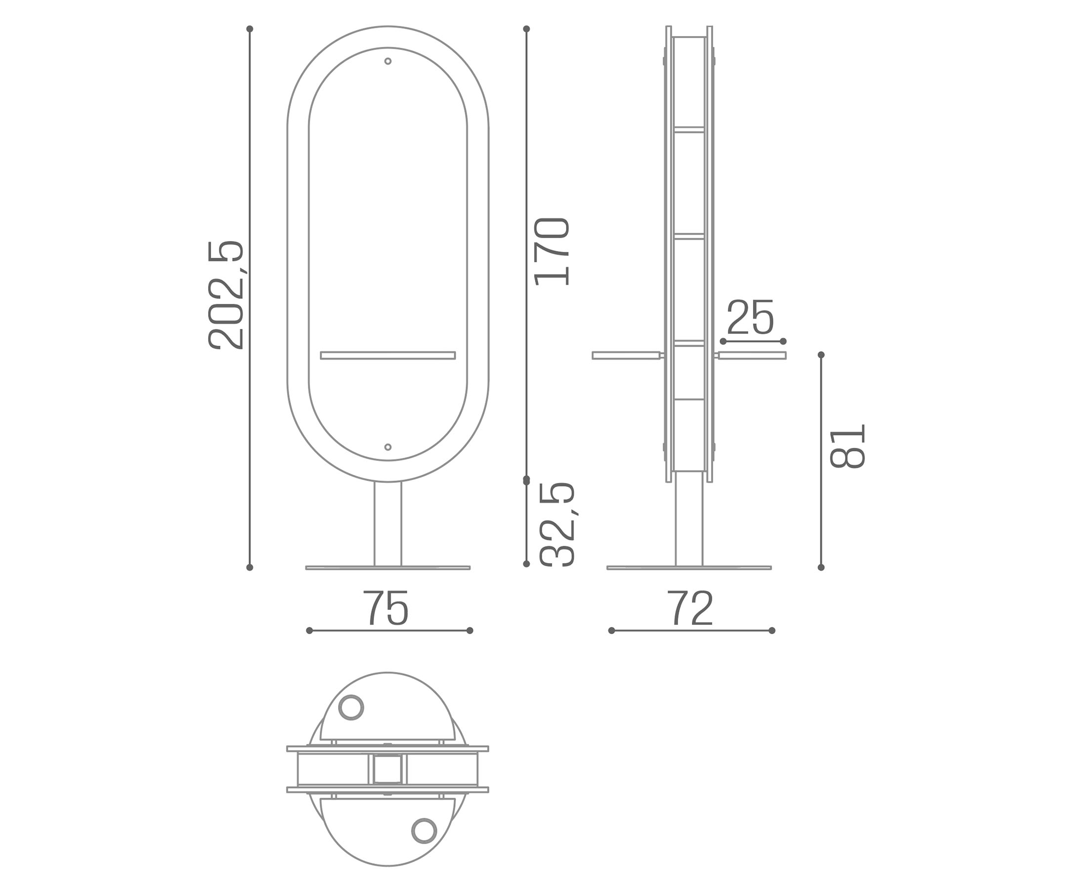 MI/640-05 Eclipse, island mirror with wooden panel and aluminum work surface