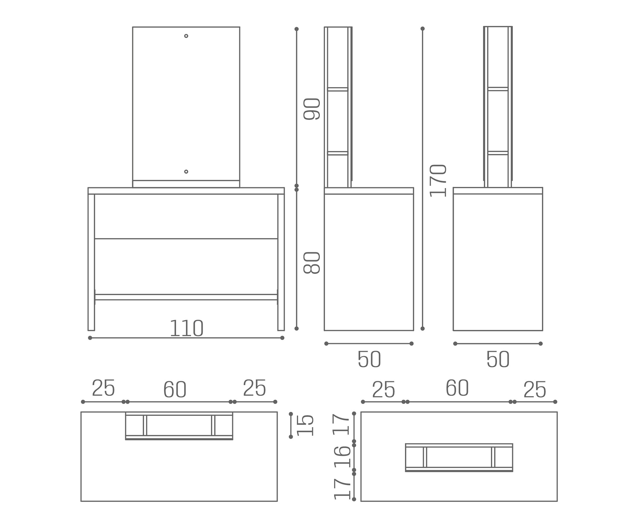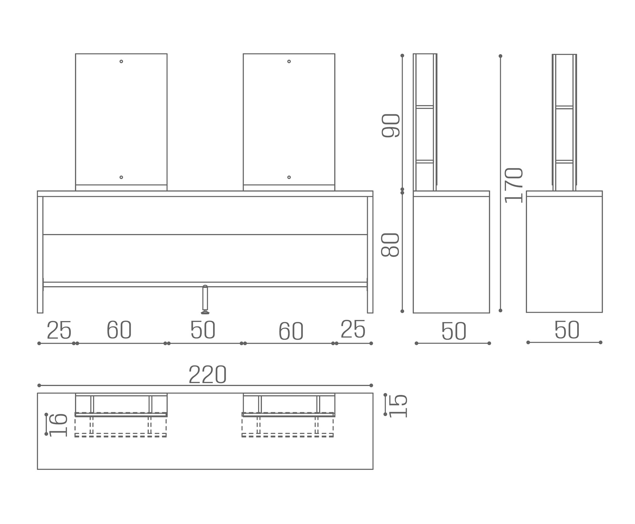 Das Brooklyn wurde geboren, um zu überraschen! Die anpassbare und auffällige Arbeitseinheit verfügt über einfache und essentielle Formen der Melaminstruktur aus Ash White und ist in vier Versionen erhältlich: Einzel- oder Doppelwand-Platz und Inseleinheit mit zwei oder vier Positionen. Darüber hinaus ist der Brooklyn entweder mit runden oder rechteckigen Spiegeln ausgestattet. Wenn Sie auf der Suche nach einem raffinierten Platz sind, ist der runde Spiegel genau das Richtige für Sie. Wenn Sie stattdessen die reinen Geometrien bevorzugen, wählen Sie den rechteckigen Spiegel, der viel Platz zur Aufbewahrung der Produkte bietet. Fußstütze aus Edelstahl enthalten.