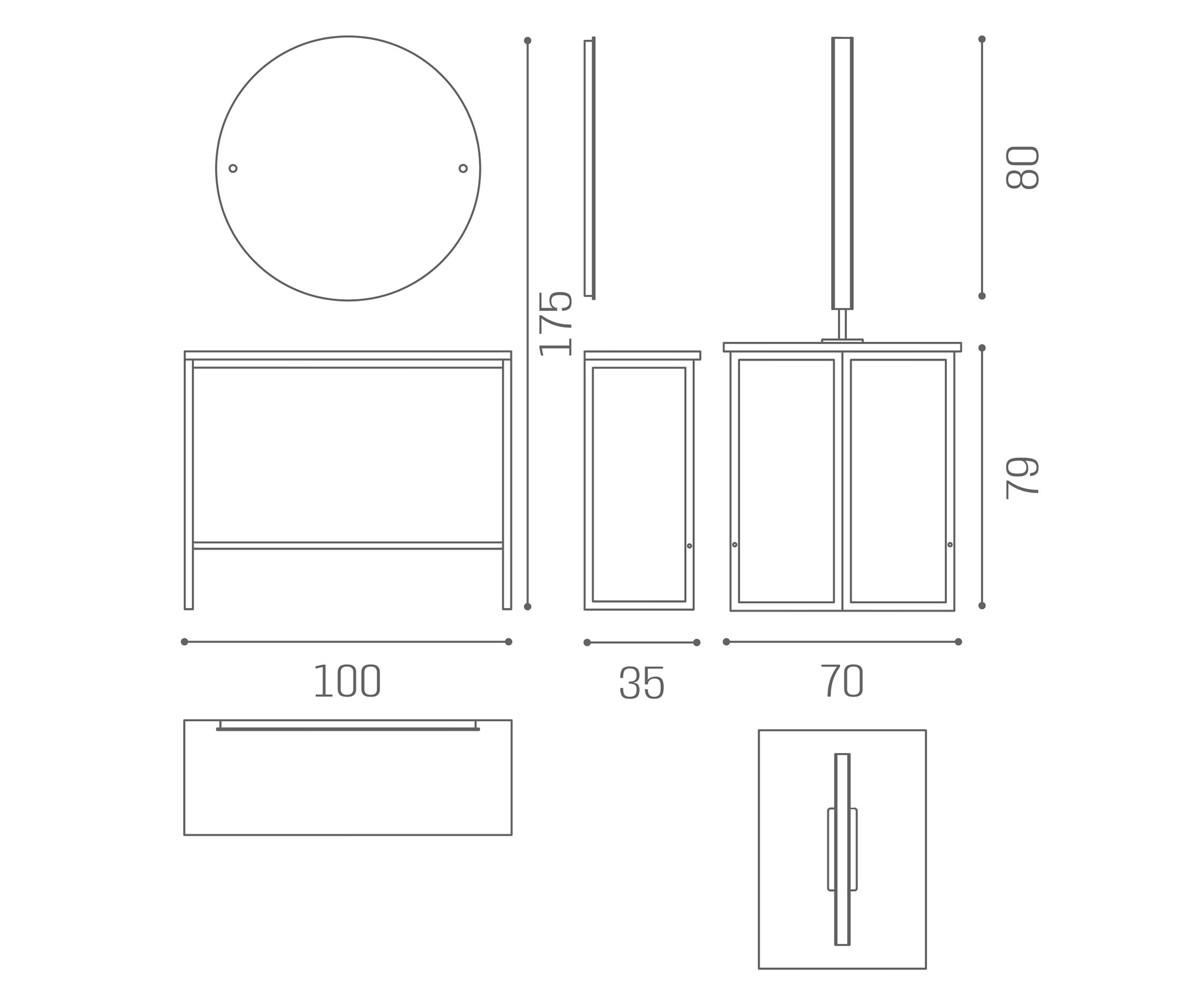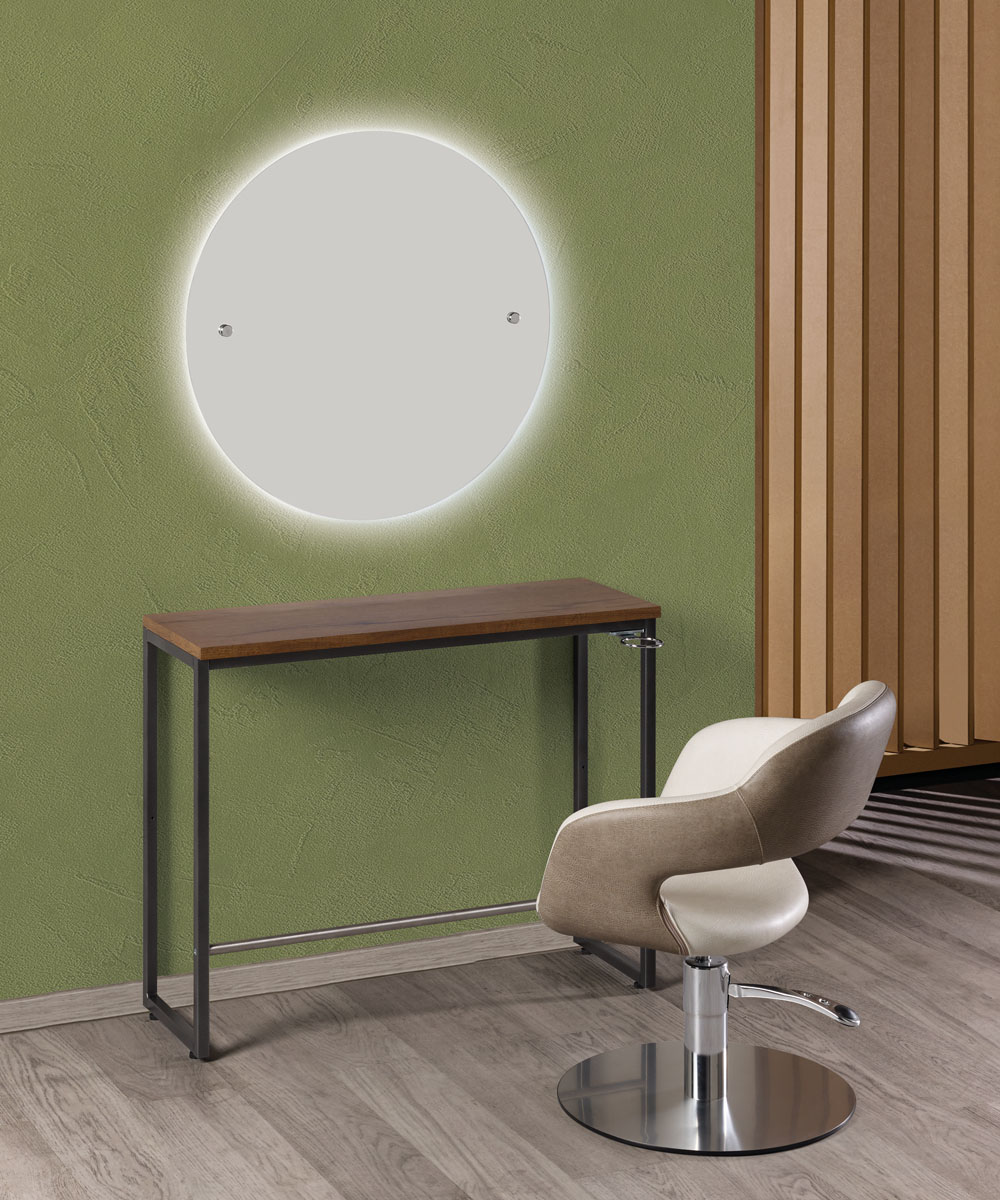 The London mirror consists of an anthracite metal structure and a melamine top available in different finishes, for an extremely contemporary industrial style. The London is available in both wall mirror and island unit versions. On top of that, the London comes with either round or rectangular mirrors, for either classic or minimal look.