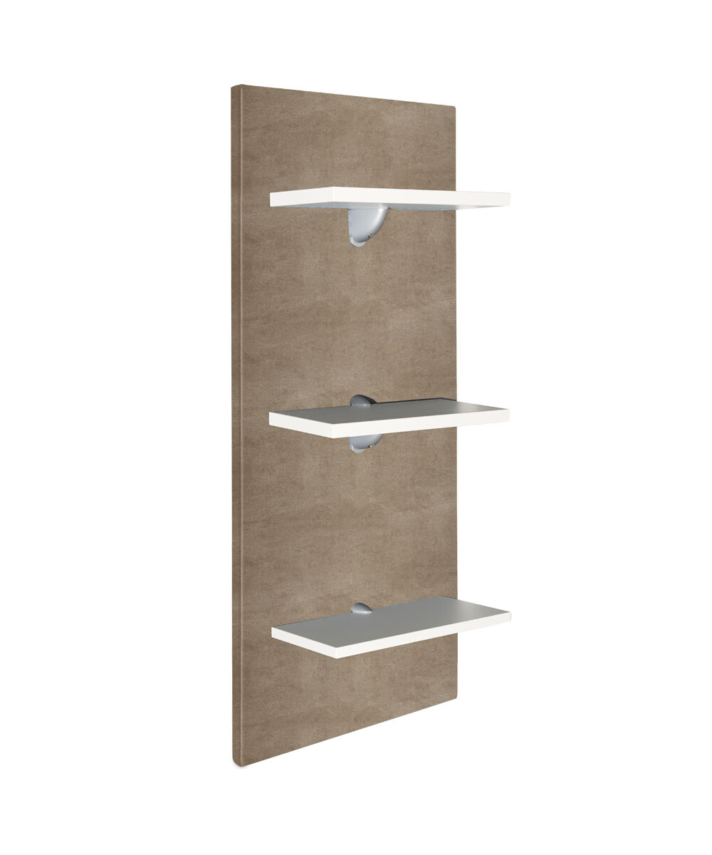 Crea un angolo dedicato ai tuoi prodotti con il nostro espositore a parete Decor! I ripiani in legno bianco donano un tocco di purezza e luminosità, mentre la base, personalizzabile in ben 42 rivestimenti diversi, ti permette di creare un pezzo unico e coordinato con l'arredamento del tuo salone.