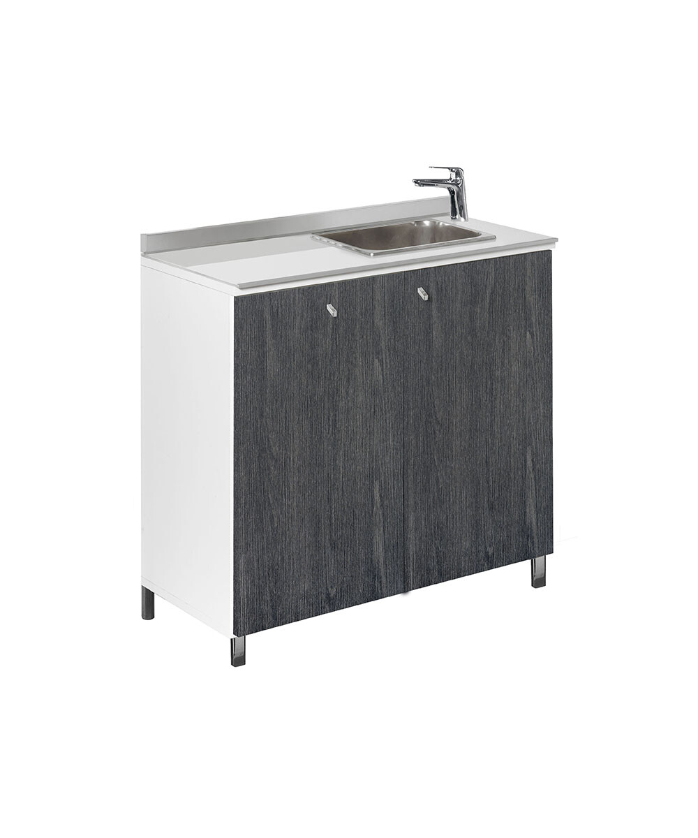 WO/142 Service Centre, mobile retrolavaggio 80 cm con lavabo a sx e piedi di alluminio
