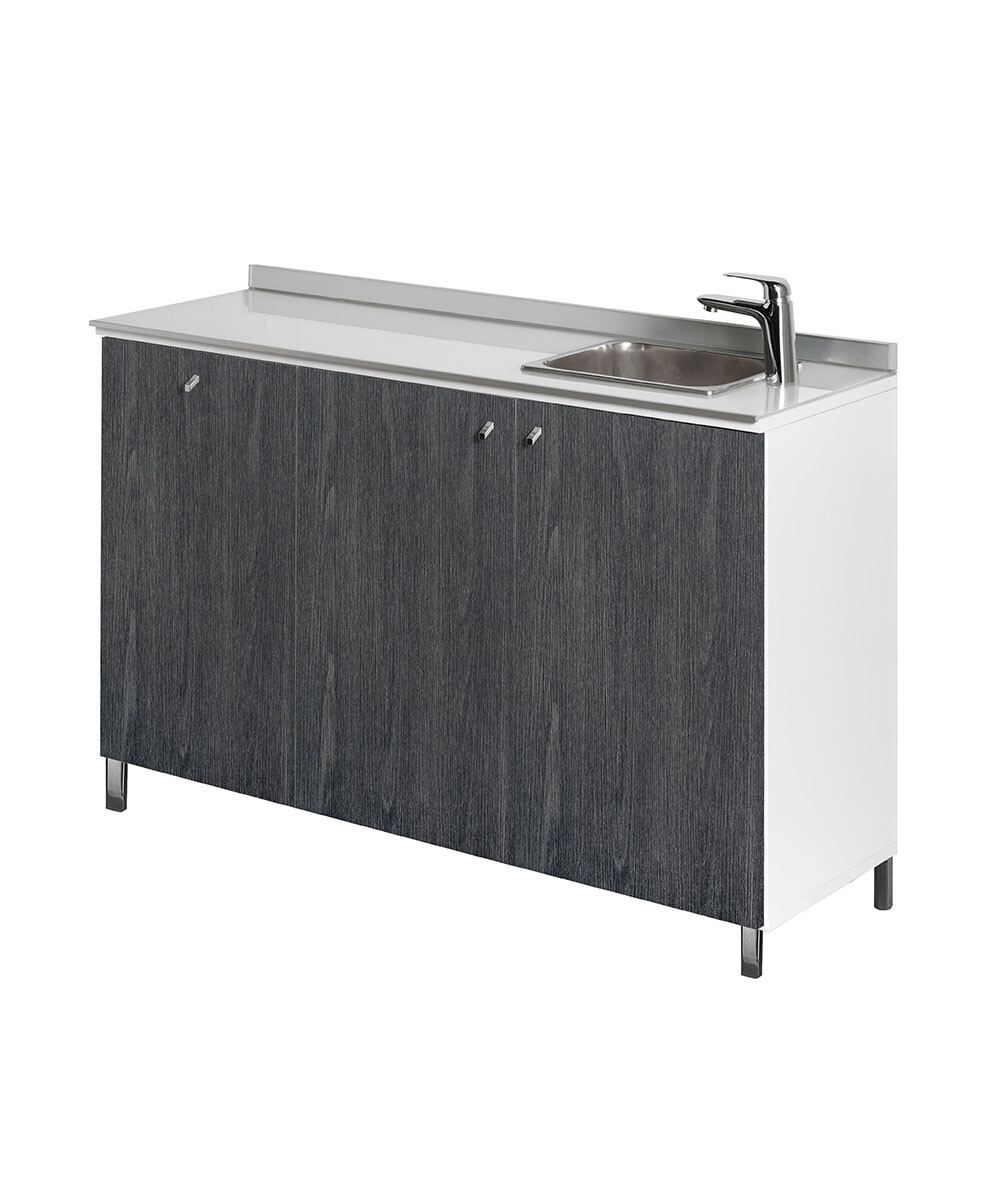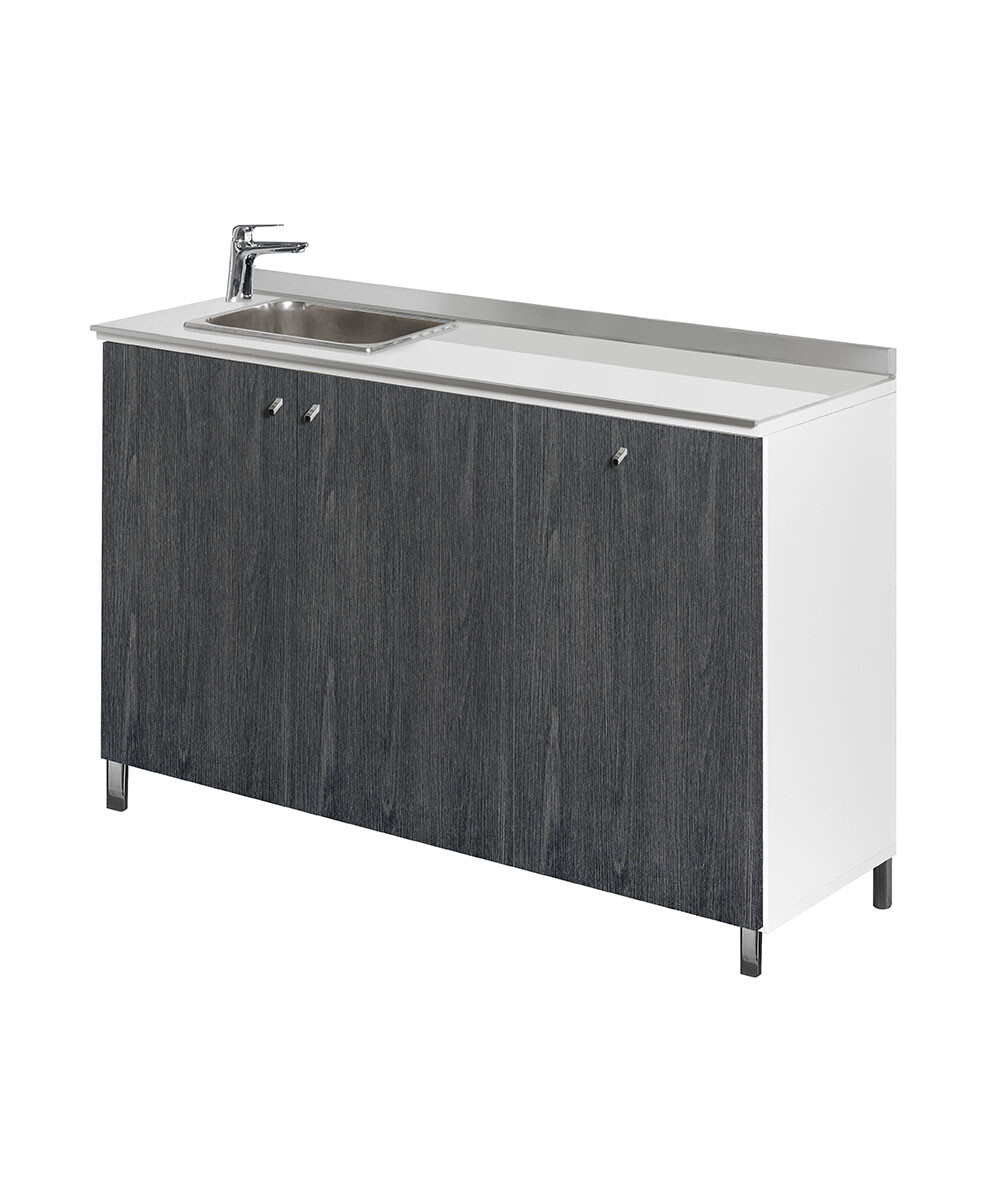 WO/145 Service Centre, mobile retrolavaggio120 cm con lavabo a sx e piedi in alluminio