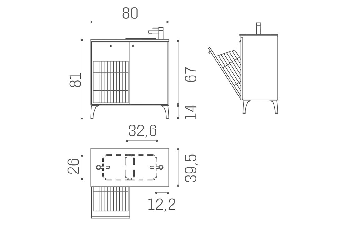 WO/141 Service Centre, mobile retrolavaggio 80 cm con lavabo a dx e piedi di alluminio