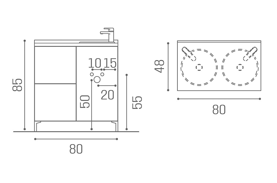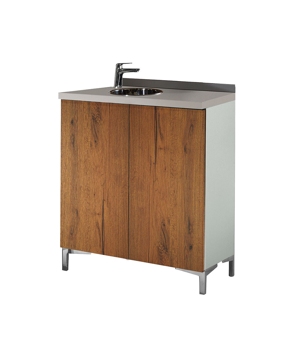 WS/083 Wall System, mobile retrolavaggio 80 cm con ante, e lavabo a sx