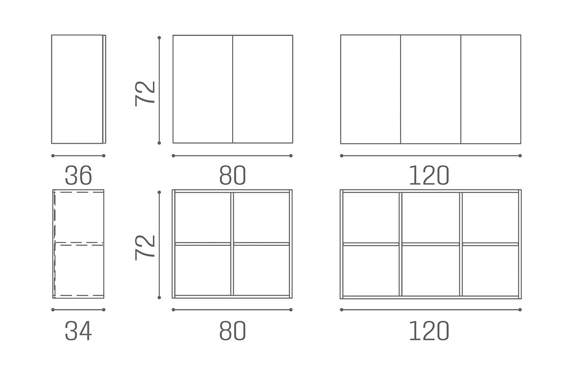 WS/036 Wall System, pensile retrolavaggio 80 cm con ante