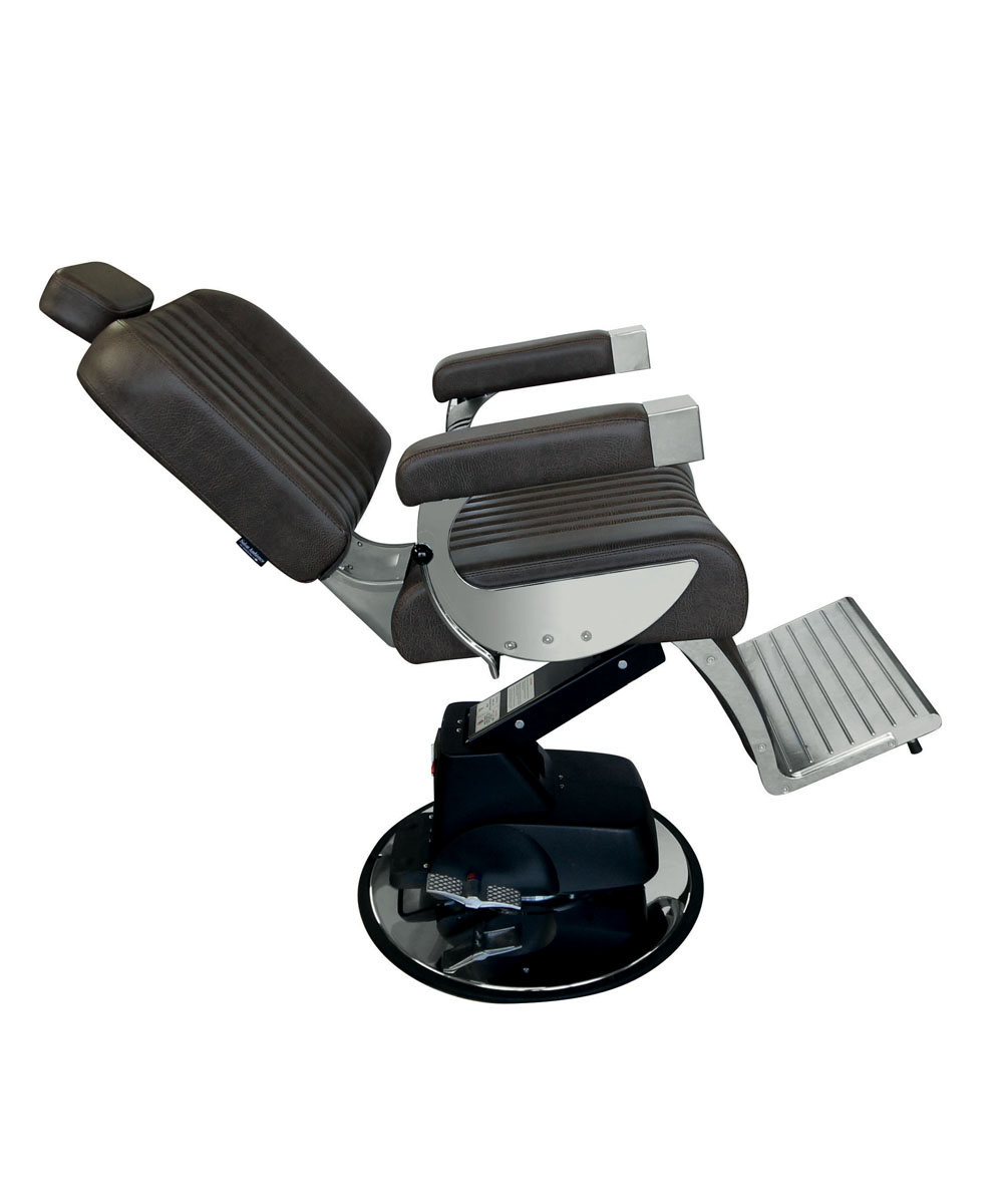 La poltrona uomo Exécutif porta lo stile “old school” nei moderni saloni da barbiere di oggi. La seduta e lo schienale offrono un design sorprendente con il dettaglio delle cuciture artigianali a finitura della tappezzeria. Lo schienale reclinabile e il poggia gambe sollevabile, così come il poggiatesta regolabile, offrono il massimo comfort per il cliente. I braccioli in metallo cromato e il poggia gambe in alluminio sono il tocco finale che completa questa incredibile poltrona da barbiere.