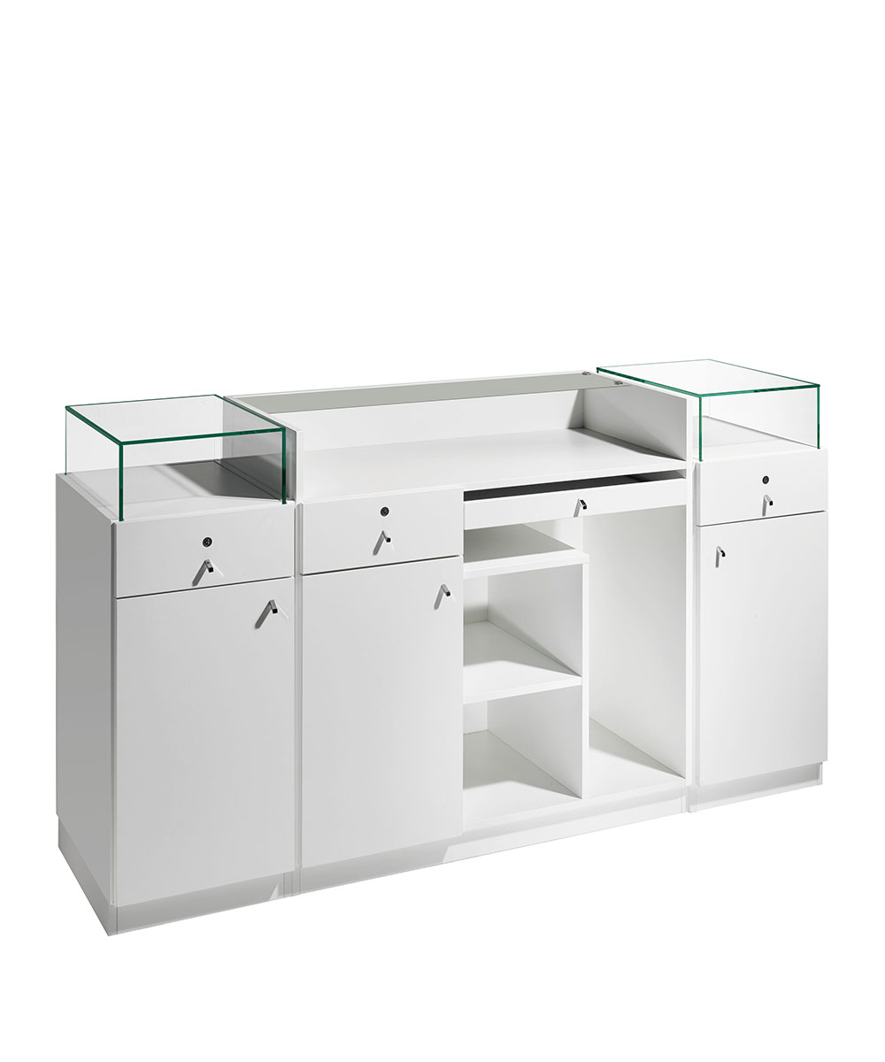 Romance è il mobile reception che risponde alle esigenze di praticità e di funzionalità del tuo salone, valorizzandone allo tempo stesso il design e l’estetica. Le linee eleganti ed essenziali, e lo stile pulito e minimale, lasceranno senza parole i tuoi clienti fin dall’ingresso. Con la struttura in nobilitato bianco frassinato, dotata di un ampio spazio di lavoro, e provvista di numerosi vani, armadietti e cassetti, non avrai più problemi di spazio. Romance è anche componibile: è possibile aggiungere al corpo centrale uno o due mobiletti laterali, anch’essi dotati di scomparto con anta, cassetto e teca in vetro per l’esposizione di prodotti. Fare ordine e organizzare lo spazio non è mai stato così facile!