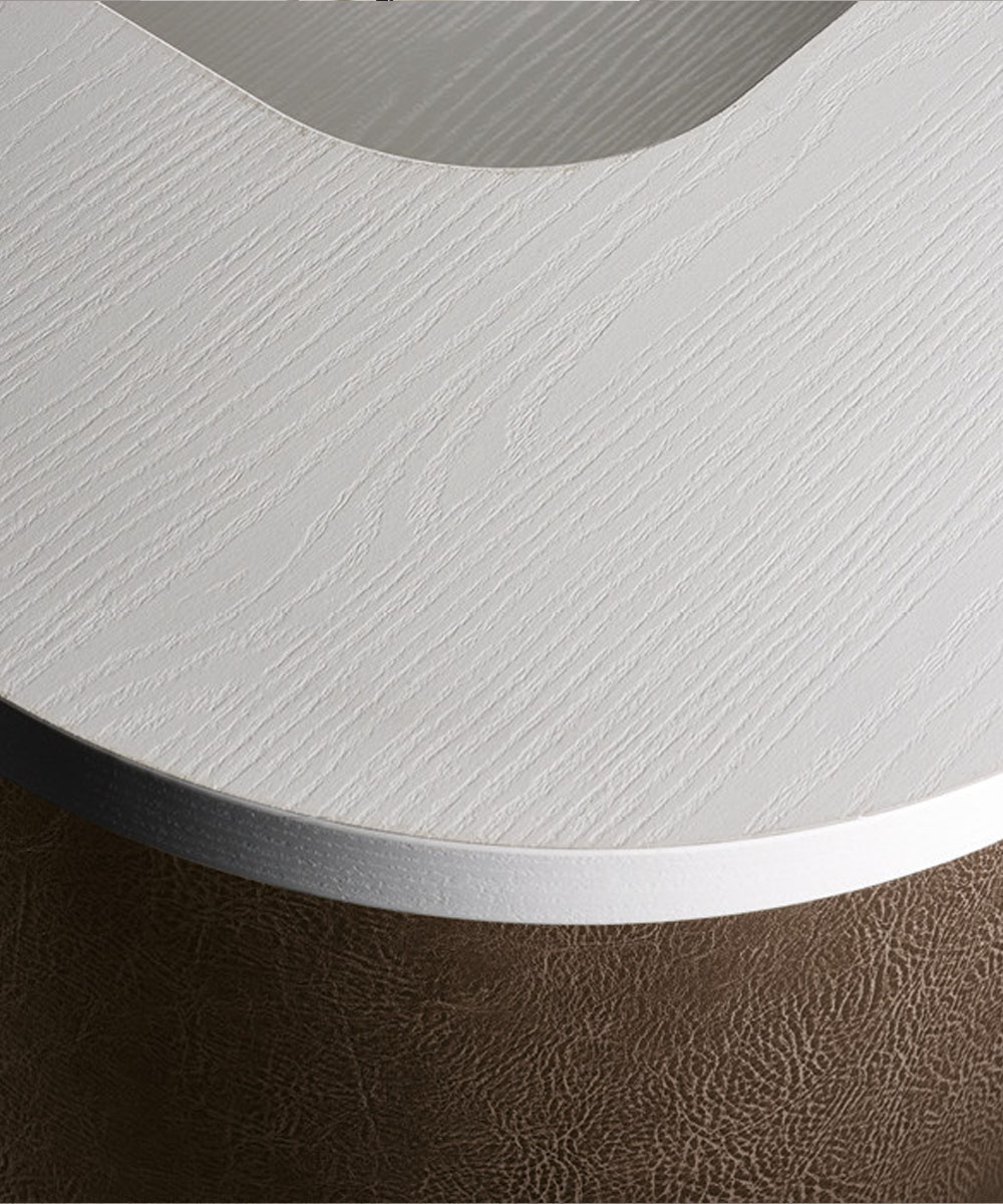 RD/260 Smart reception in bianco frassino con frontale curvo tappezzato