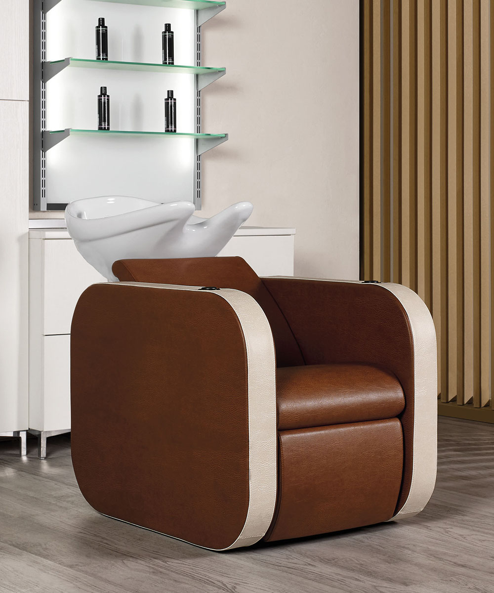 Iconwash è un classico del futuro! La forma elegante ed arrotondata dei braccioli si combina magnificamente con la seduta e lo schienale, creando uno stile minimalista e moderno. Oltre al design fantastico, Iconwash offre al tempo stesso una comodità e una funzionalità incredibili. Completo di un ripiano di servizio situato sotto il lavandino basculante in ceramica, Iconwash sarà un ottimo strumento per il lavoro del parrucchiere! In più, Iconwash è disponibile con o senza alzagambe elettrico e in versione due o più posti.