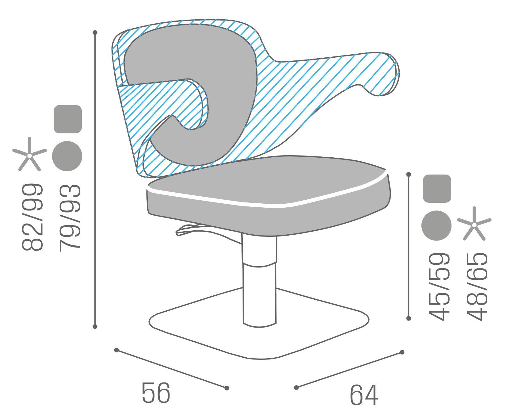 CH/220-4/S Embrace, poltrona con base squadrata e pompa idraulica con freno