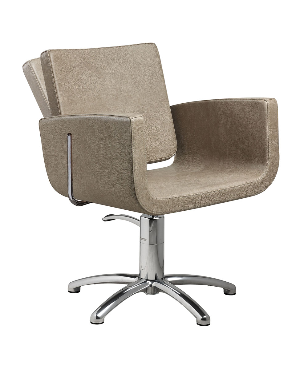 Le poltrone Salon Ambience sono disponibili con tre tipi di base — a cinque razze, rotonda o stondata — in finitura standard o nera, e possono essere dotate di colonna girevole oppure di pompa con freno. La pompa, 100% Made in Italy, è garantita 5 anni.