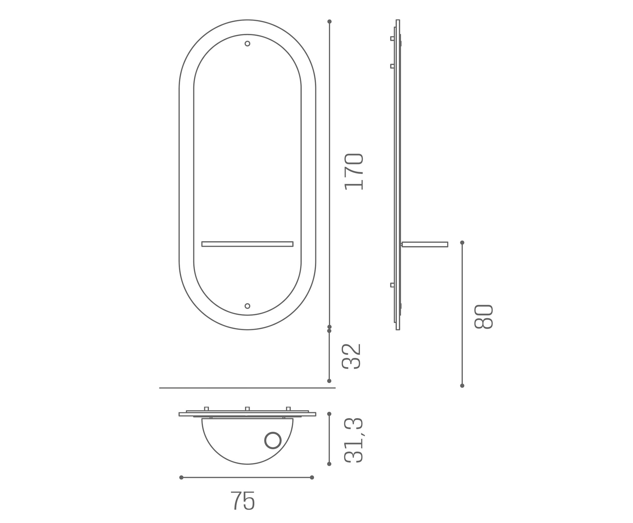 MI/630-05 Eclipse, specchiera con pannello in legno e pianetto in alluminio