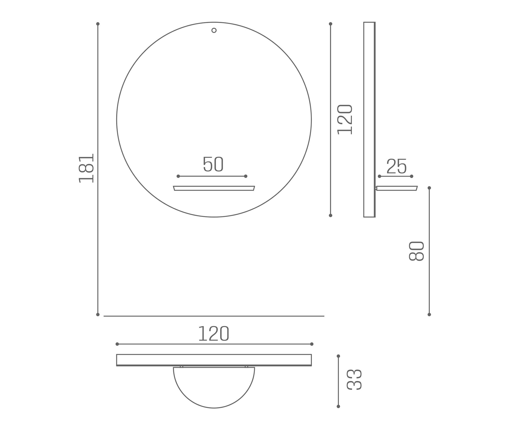 MI/490-05 specchiera a muro Planet, con pianetto in alluminio e illuminazione LED RGB