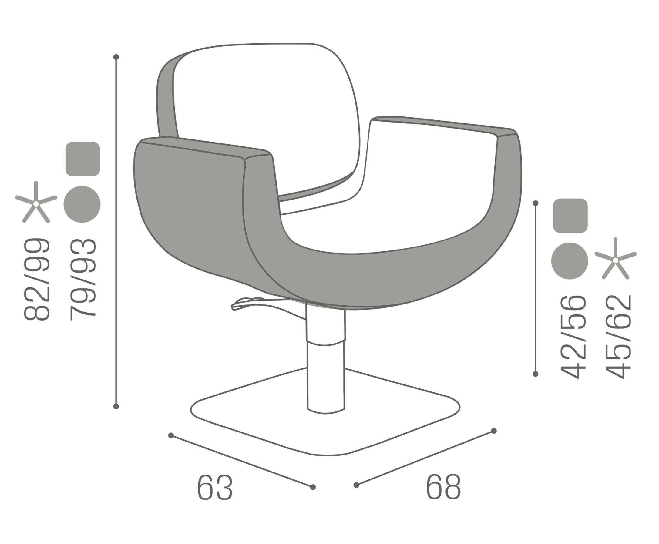 All Salon Ambience chairs are available in three bases (star, round and square) and with swivel column, gas and pump with brake. The pump is 100% Made in Italy and is guaranteed for 5 years!
