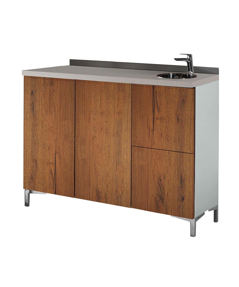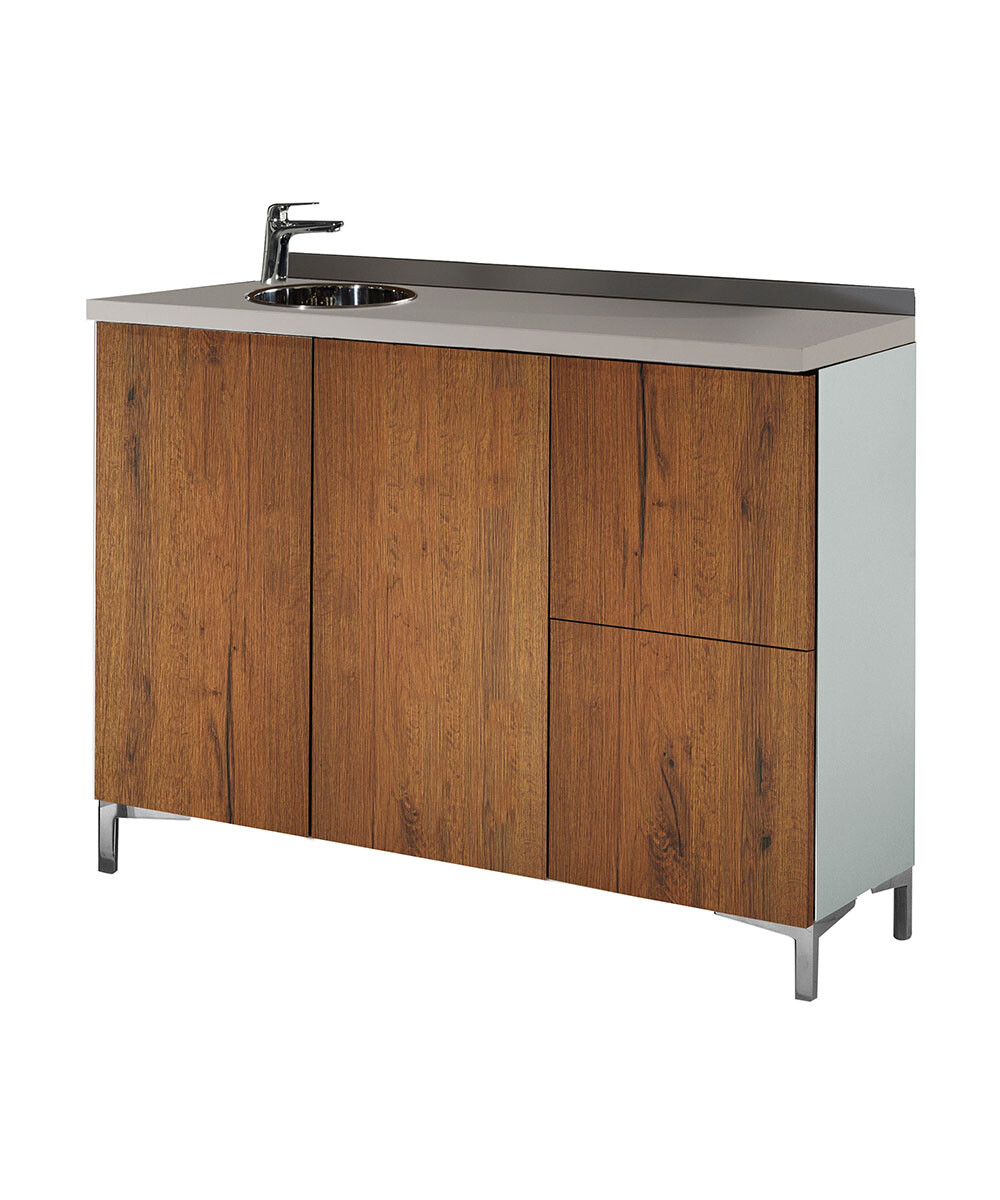 WS/040 Wall System, 120 cm backwash cabinet with doors and drawers on the right