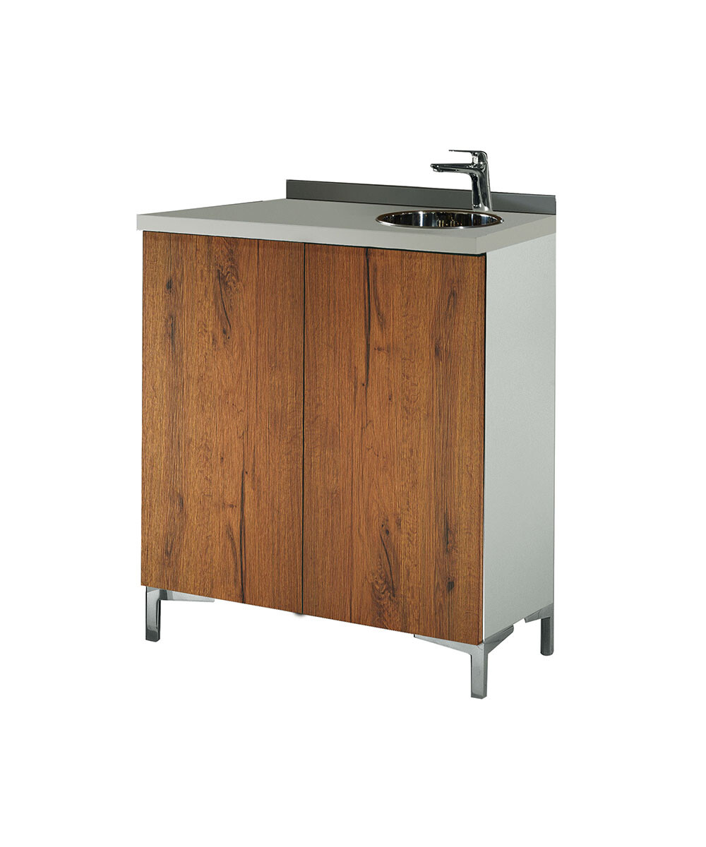 WS/083 Wall System, 80 cm backwash cabinet with doors and basin on the left
