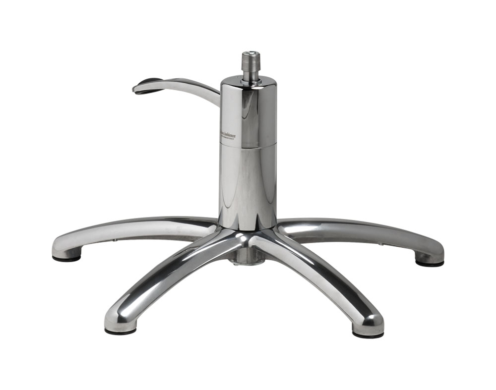 Salon Ambience chairs are available with three types of base — five-star, round or rounded — in standard or black finish, and can be equipped with either a swivel column or a brake pump. The pump is 100% Made in Italy and comes with a 5-year warranty.
