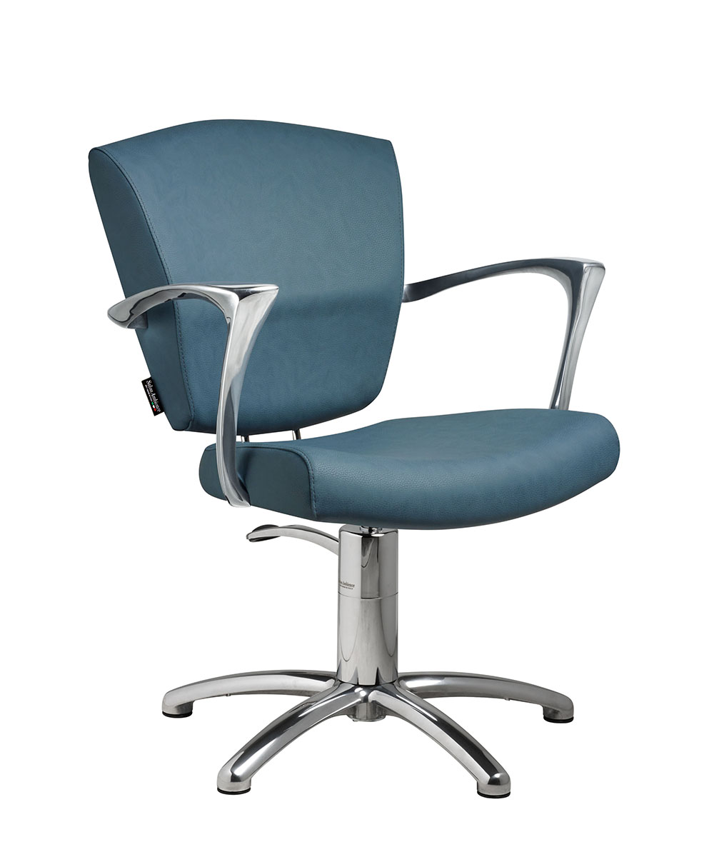 The impressive form of the Maya styling chair creates an impact in any salon, thanks both to the thick, stylish form of the chair itself, and also to the beautifully formed aluminium armrests that complete the strong visual effect of the chair, while still creating a product of maximum comfort.