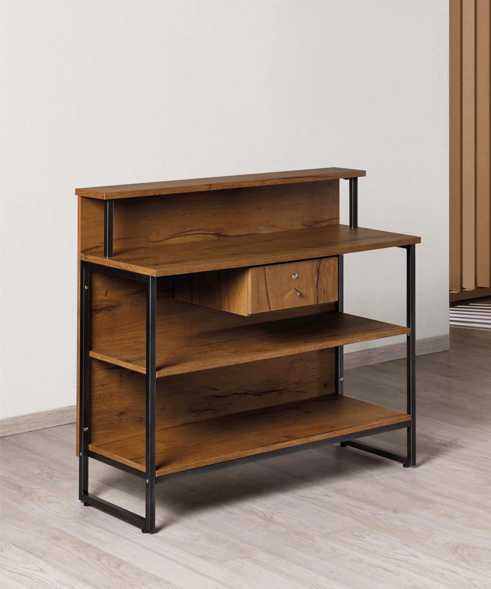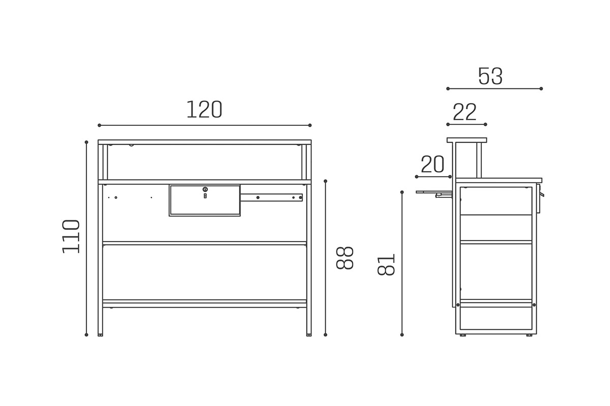The retro style of the Urban Line is also featured with the Carnaby reception desk: perfect in size and generous in the storage space, it is enhanced by two LED lighting strips (with two individual switches), highlighting the material of the front panel and illuminating the worktop. The Carnaby reception desk (as well as the whole Urban Line) is now available in different materials.