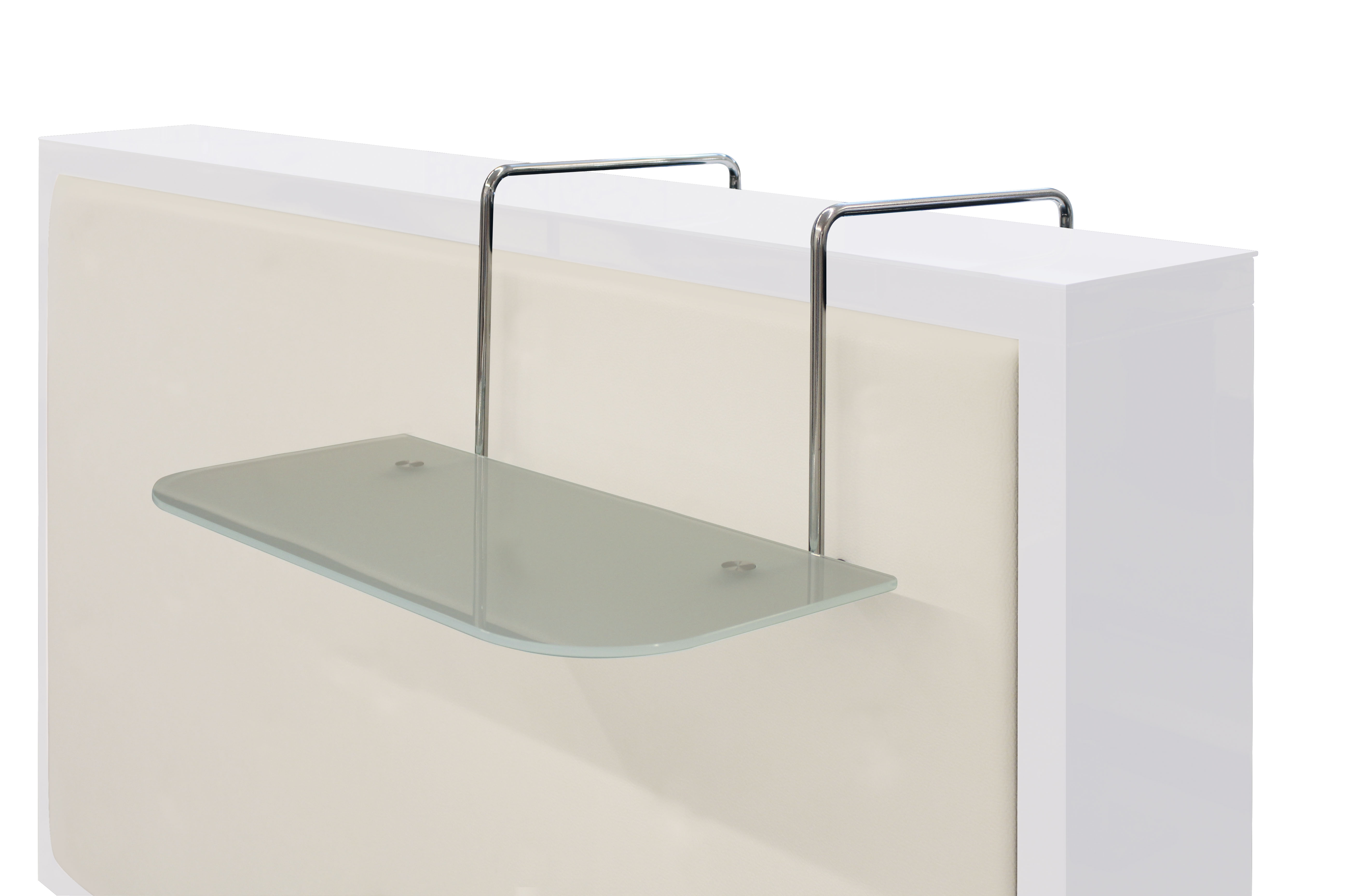 The Millennium reception desk boasts essential lines and is available in two beautiful versions. For a minimal and modern style, choose the version with backlit white plexiglass front. For a more sophisticated and elegant design, choose the version with upholstered front. The front panel can be customized by choosing from a wide range of colours at no extra cost. The structure of the reception desk is very functional, equipped with drawers, and storage compartments.