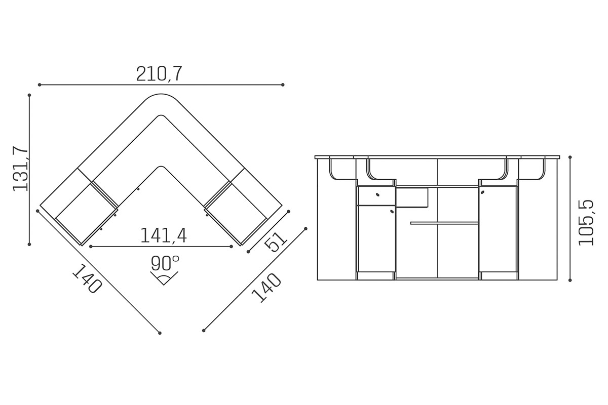 RD/262 reception desk with white ash structure, upholstered front panel and side cabinet