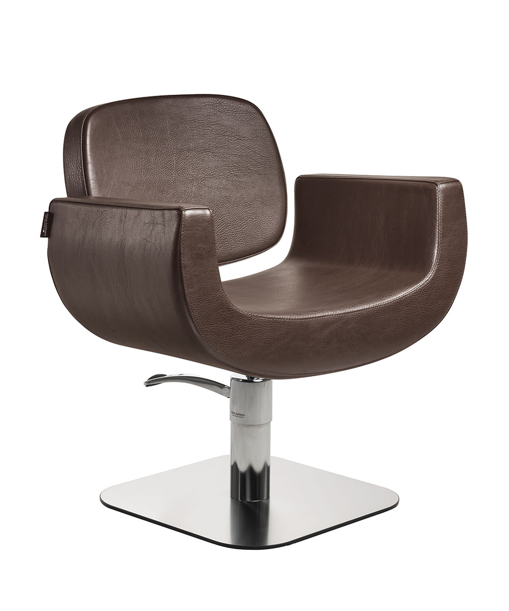 Salon Ambience chairs are available with three types of base — five-star, round or rounded — in standard or black finish, and can be equipped with either a swivel column or a brake pump. The pump is 100% Made in Italy and comes with a 5-year warranty.