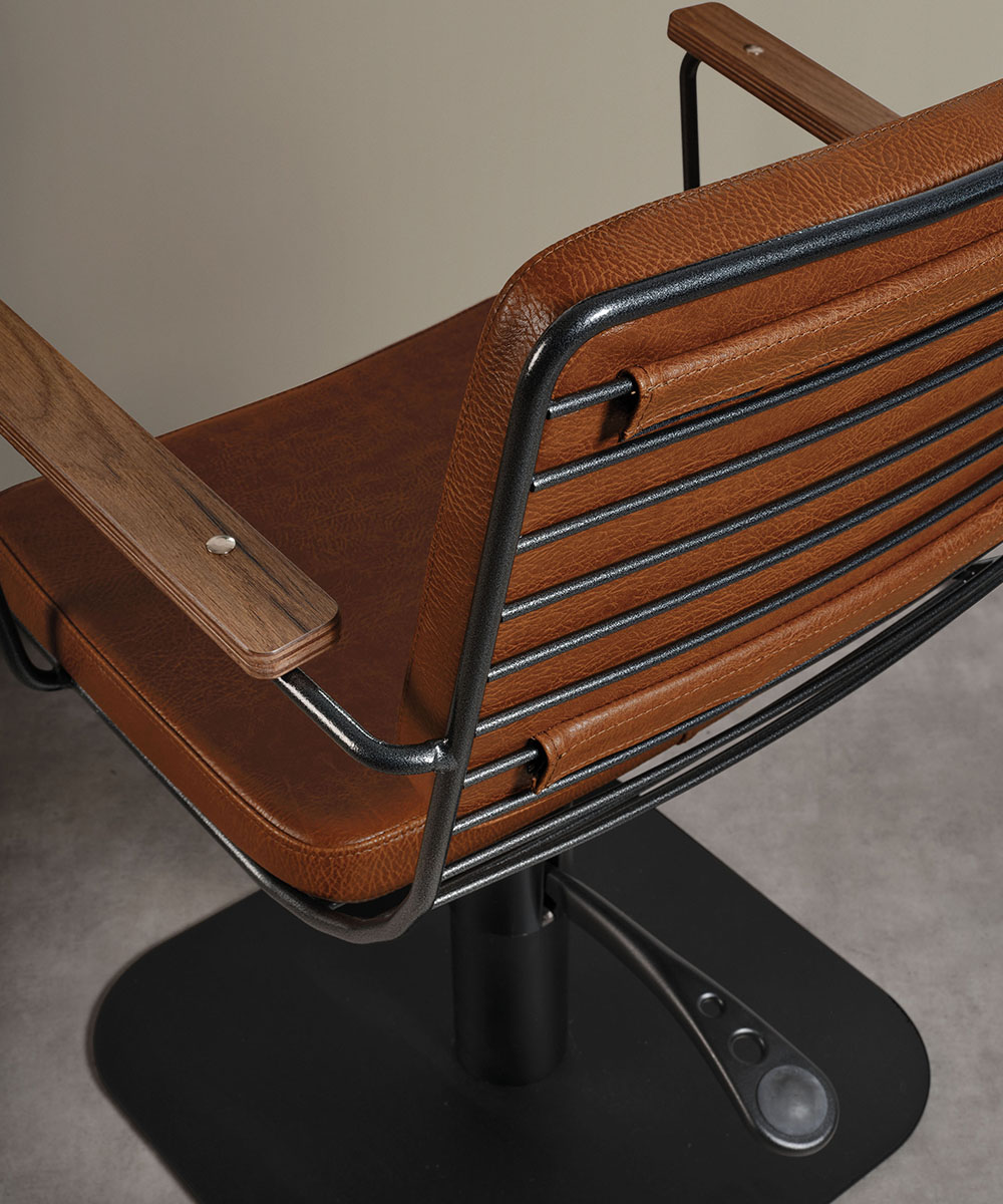 Endlich ein Friseurstuhl mit vollständig abnehmbaren Bezügen und Kissen, die mit einer einzigen Geste entfernt werden können. Die Struktur aus lackiertem Stahl und die Armlehnen aus Sperrholz machen ihn außergewöhnlich langlebig. Ändern Sie die Kissen im Laufe der Zeit nach Ihren Wünschen und wählen Sie aus den 42 verfügbaren Farben.