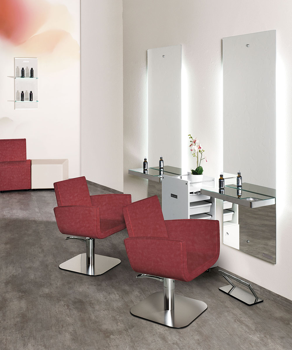 Mit einem Stil, der durch jahrelange Erfahrung studiert und perfektioniert wurde, um den bestmöglichen Komfort, Vielseitigkeit und Funktionalität zu bieten, dreht sich bei diesem Stylingstuhl von Salon Ambience alles um You! Der große U-förmige Sitz und die zart abfallenden Armlehnen garantieren Komfort für den Kunden, wobei die Rückenlehne den Rücken völlig stützt und das Gesamtbild und die Haptik dieses beeindruckenden Stylingstuhls vervollständigt.