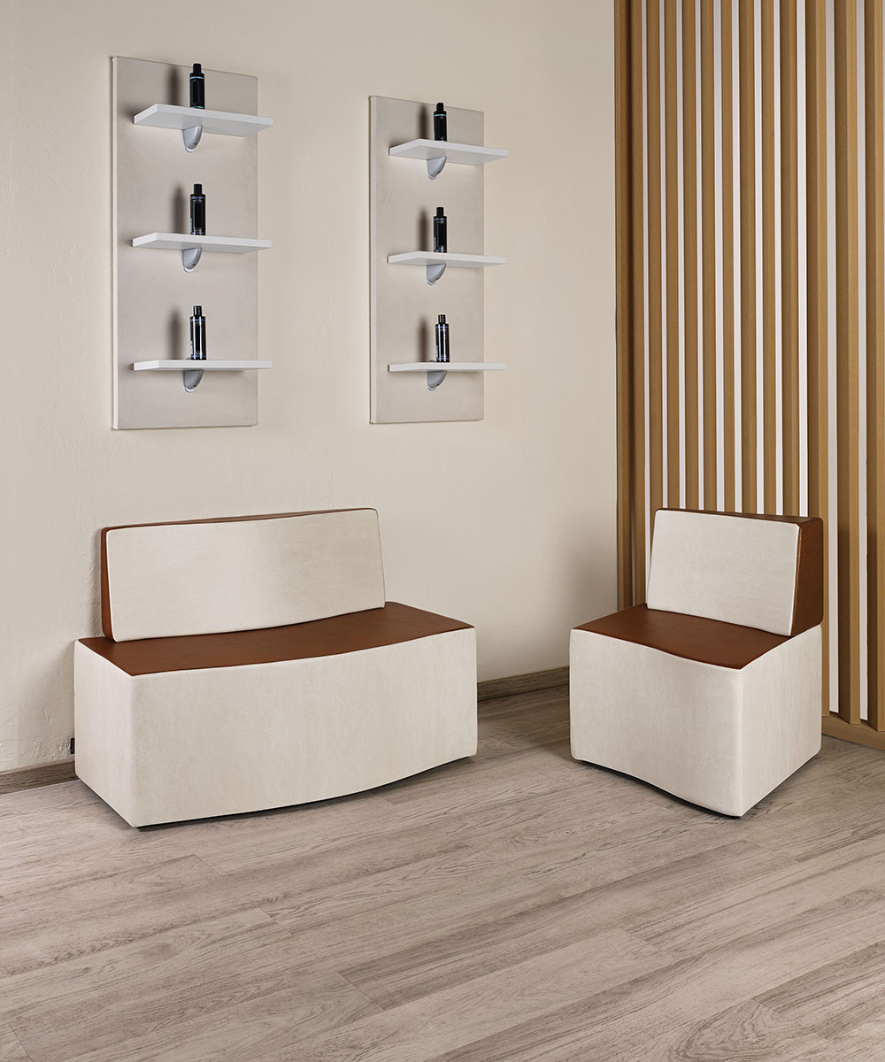 Die modularen Lounge-Wartesitze bieten vielfältige Möglichkeiten für den Empfangsbereich eines Salons. Die Lounge ist in 3 verschiedenen Versionen erhältlich; Einzel-, Doppel- und Dreifachsitze, die zu verschiedenen Versionen kombiniert werden können. Das moderne Design zeichnet sich durch anmutige Kurven aus und bietet dem Empfangsbereich eines jeden Salons einen einzigartigen Stil. Der Einzel- und Doppelsitz ist optional mit Halterung für Trockenhauben erhältlich.