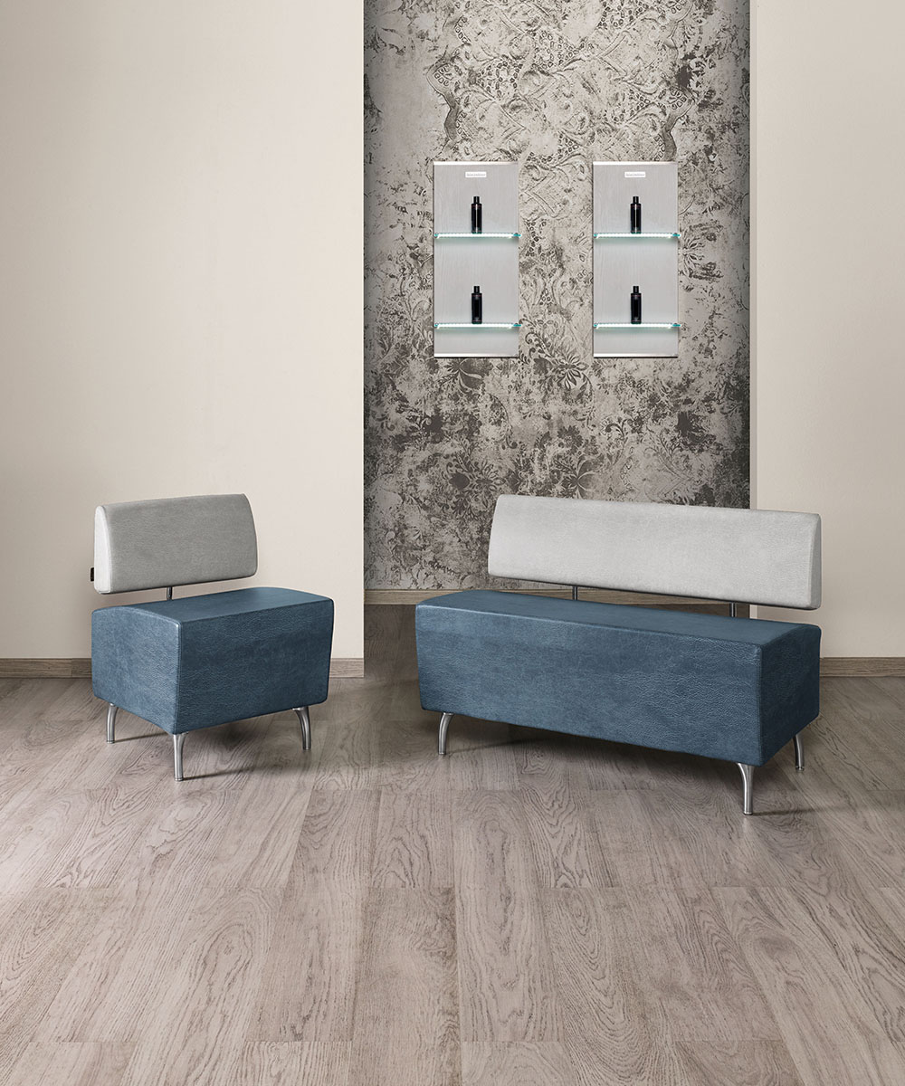 Die Wartelinie Opale besteht aus einem Zweisitzer-Sofa und einem Einsitzer-Stuhl mit weichen Linien und modernem Design. Der gepolsterte Sitz und die Rückenlehne sind in einer großen Auswahl an Farben ohne zusätzliche Kosten erhältlich.