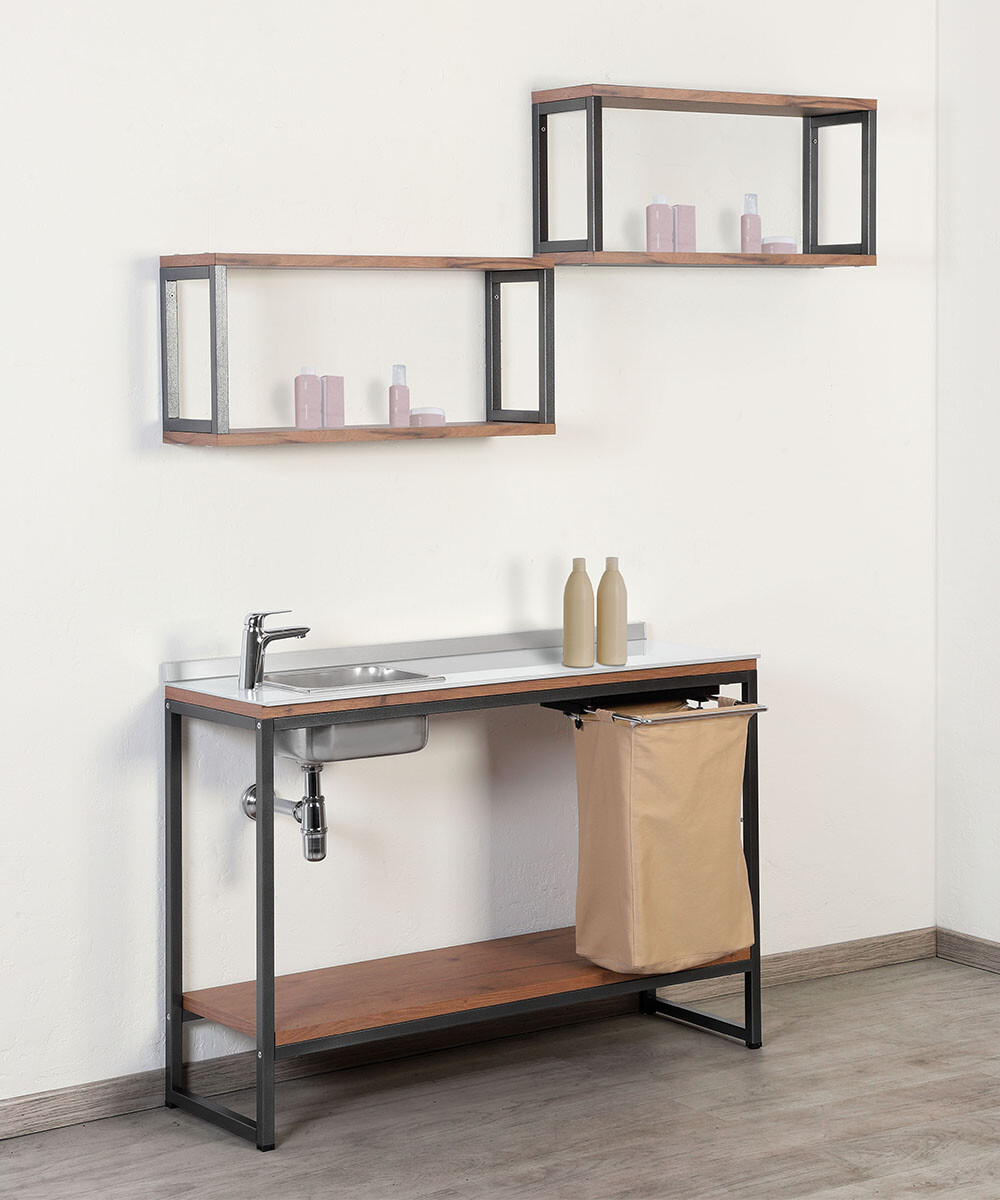 Der Camden einen industriellen Charme aus und lässt sich perfekt mit der Urban Linie kombinieren. Außerdem ist der Camden praktisch und funktional. Ausgestattet mit einer Glasplatte auf Holz, ist es mit rechtem, linkem oder ohne Becken und mit Wäschesackoption (ACC/200) erhältlich.
