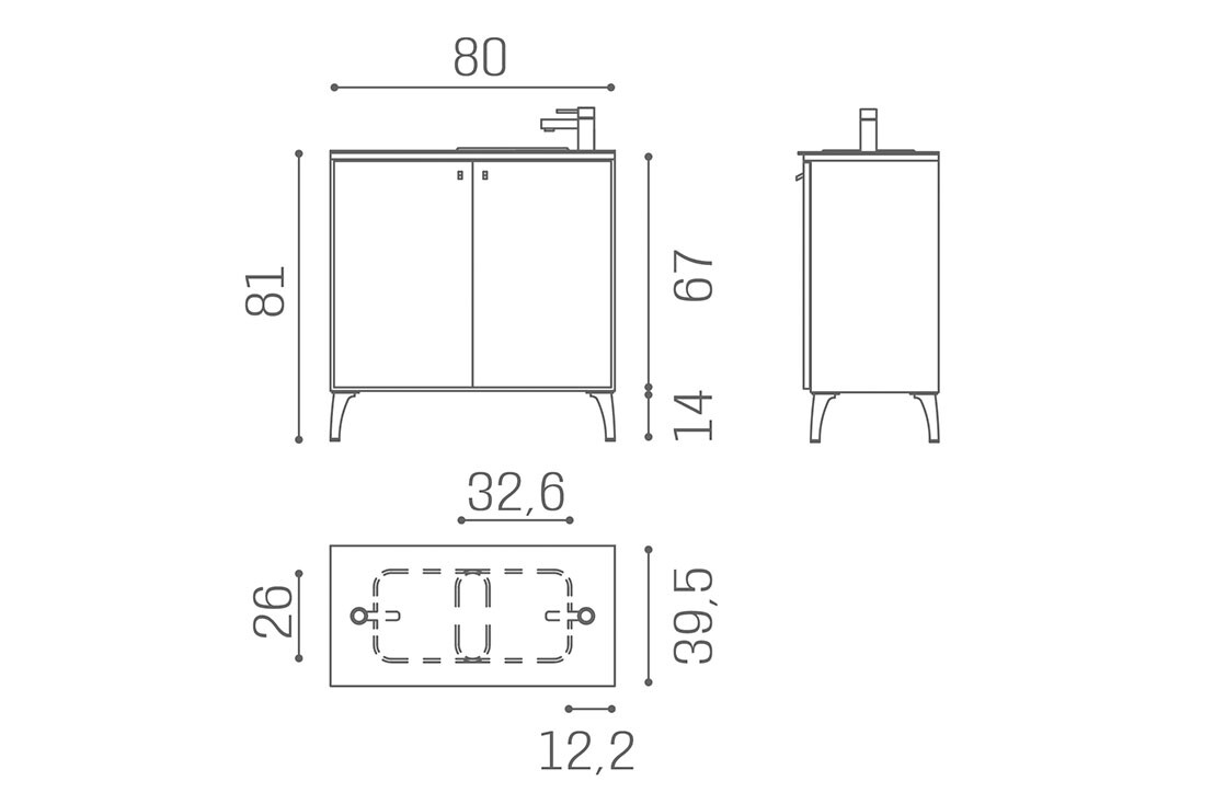 WO/140 Service Centre, 80 cm backwash unit with aluminium feet