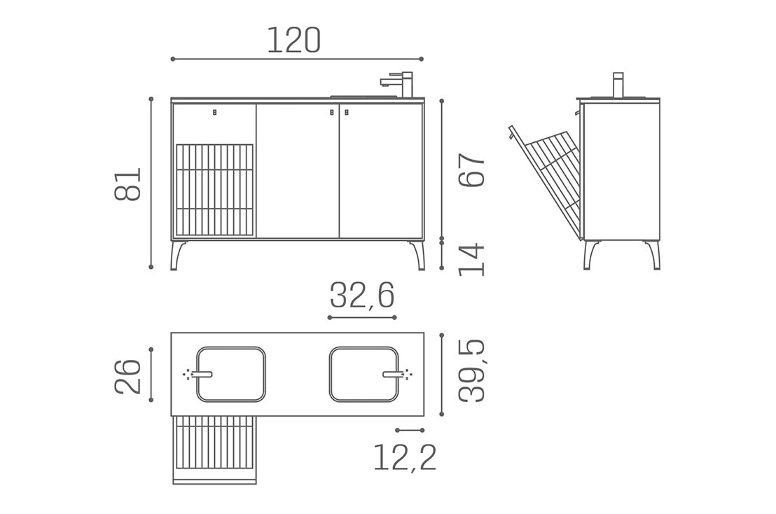 WO/143 Service Centre, 120 cm backwash unit with aluminium feet